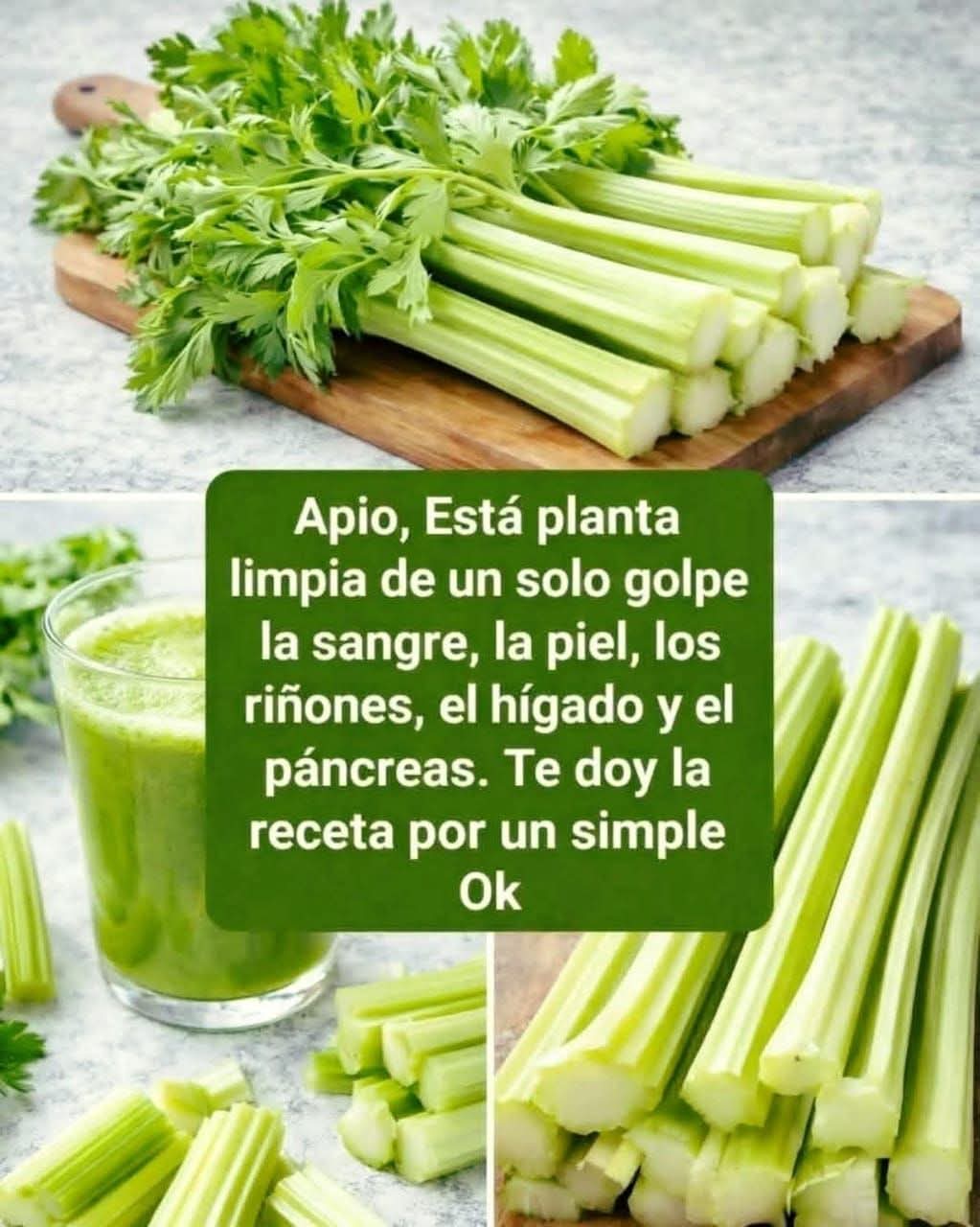 En los últimos días, una frase ha comenzado a circular con fuerza en redes sociales: “El apio limpia la sangre, la piel, los riñones, el hígado y el páncreas”. Miles de personas han reaccionado, compartido y comentado… pero lo que pocos saben es que detrás de esta afirmación hay verdades, mitos y detalles que nadie está explicando claramente.